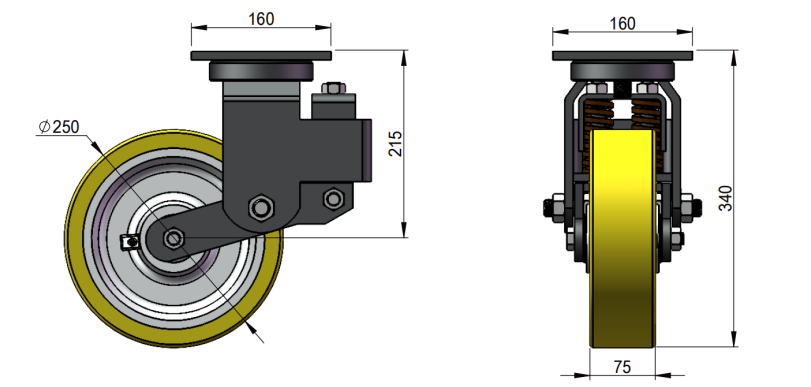 Jianglong Caster diseña especialmente ruedas amortiguadoras externas de doble sección para aplicaciones de peso extra pesado, que pueden ajustar automáticamente el rendimiento de amortiguación según diferentes condiciones de carretera. La estructura de doble etapa ofrece una solución de amortiguación adaptativa para cargas de 500 a 1500 kg, mejorando eficazmente la estabilidad de las ruedas durante la dirección y la tracción, y garantizando un transporte de mercancías más fluido y fiable. Esta rueda reduce significativamente la resonancia durante el transporte y disminuye el riesgo de caída de materiales. Es una opción ideal para logística y almacenamiento, remolques AGV y equipos de manipulación de materiales, brindando un sólido respaldo a la seguridad de las mercancías y la eficiencia de manipulación.